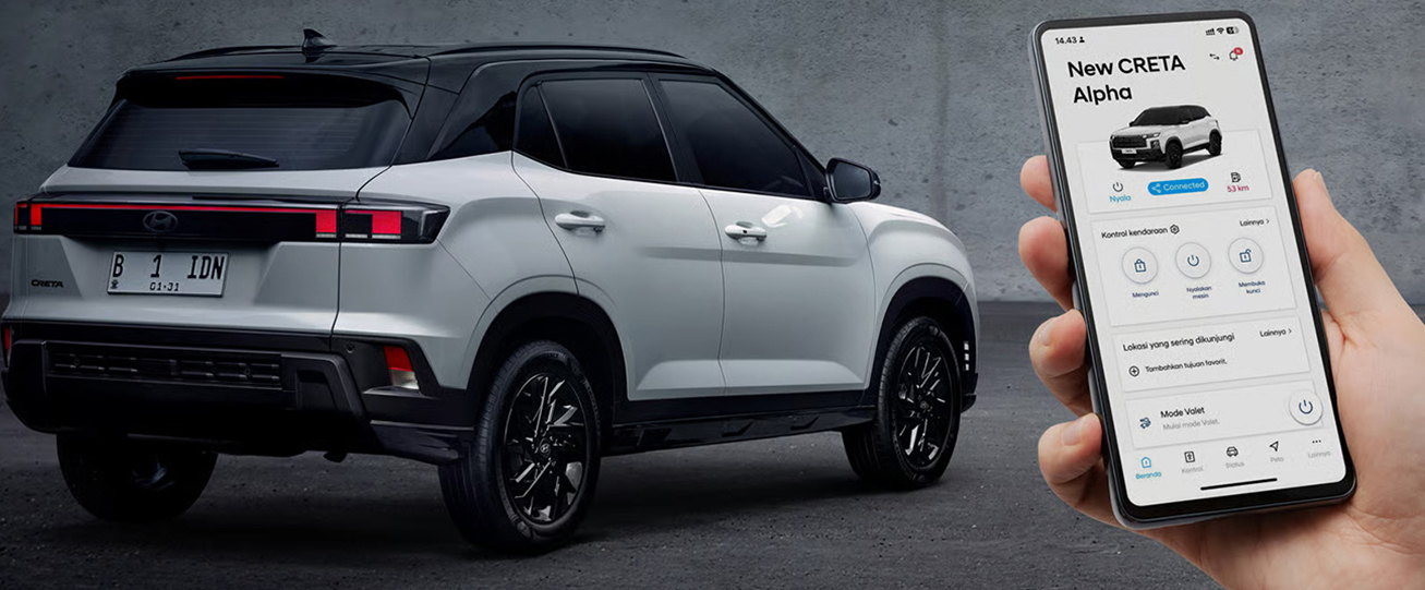 New CRETA telah dilengkapi dengan Bluelink, yang memudahkan pengecekan informasi tentang mobil Anda. Terhubung dengan call center Hyundai 7 x 24 jam saat terjadi kondisi darurat untuk segera memberikan Anda bantuan.